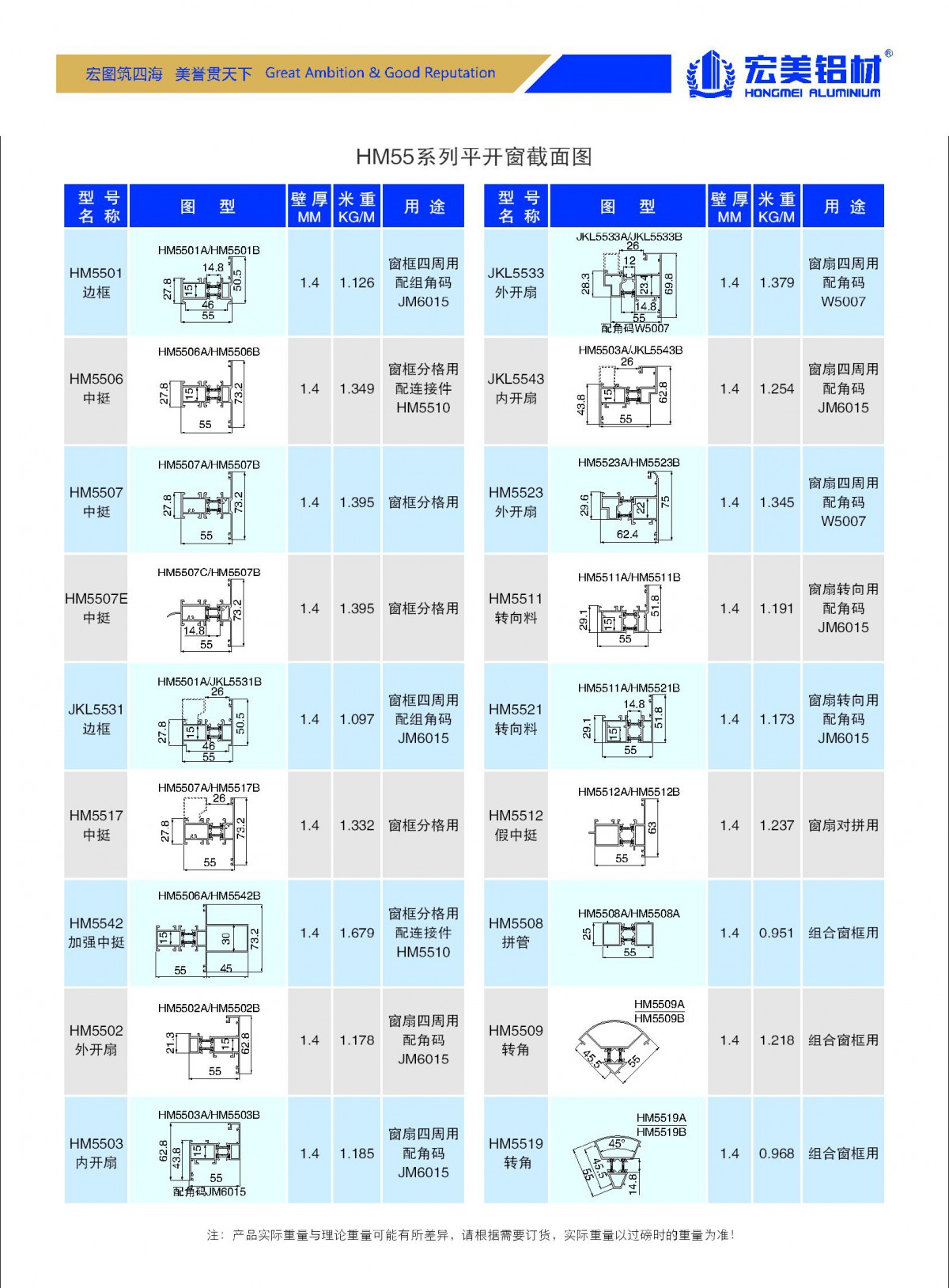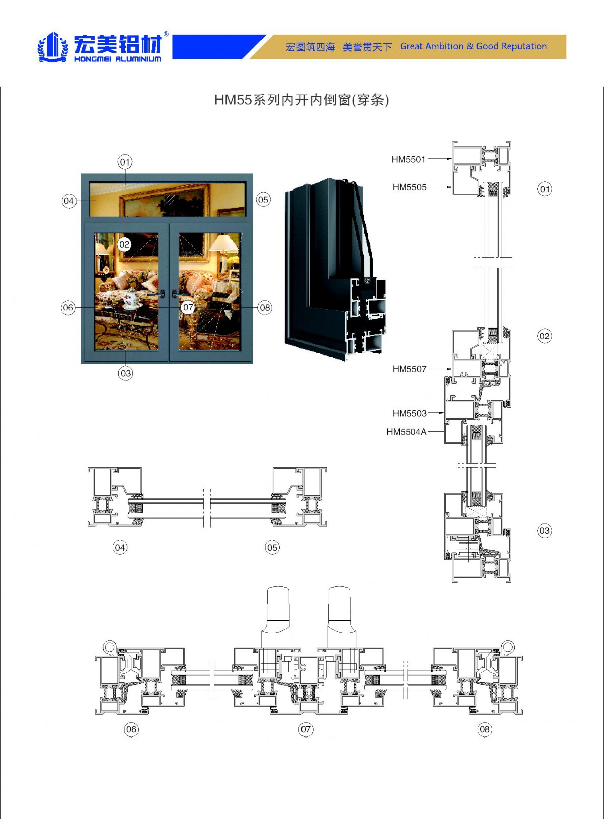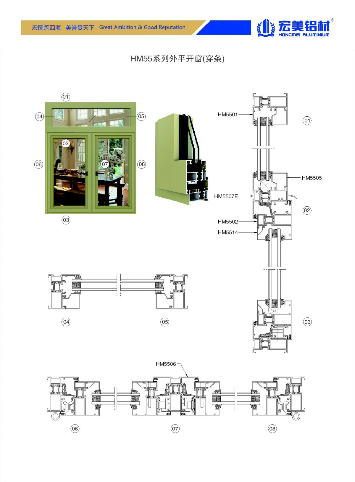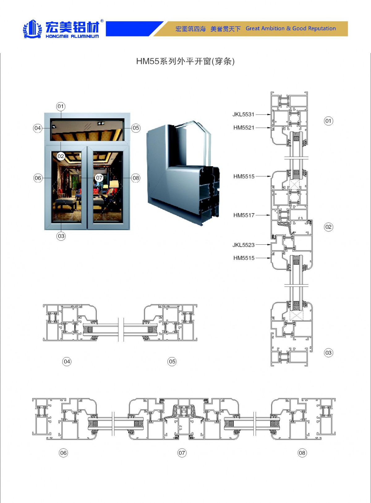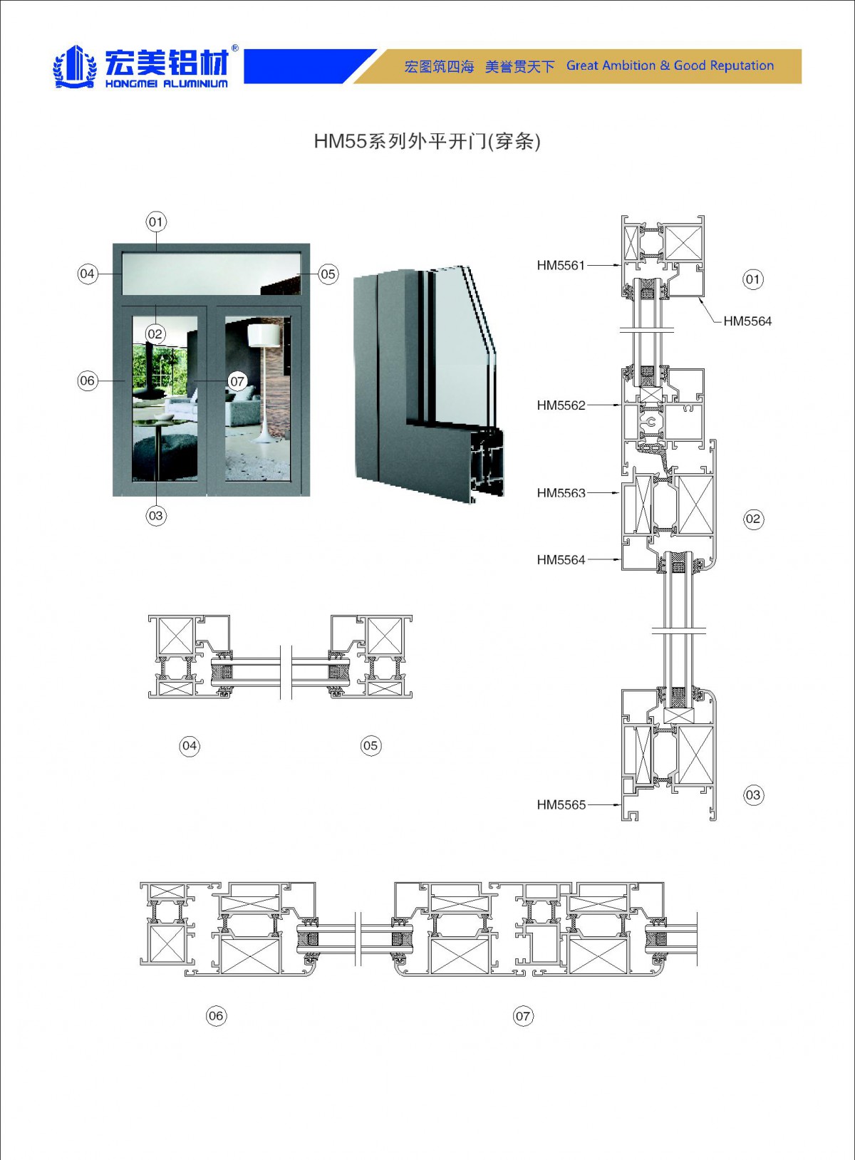 HM55系列穿条平开窗(门)