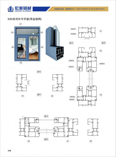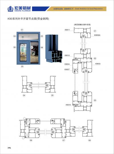 K90 系列穿条平开窗(带金刚网)